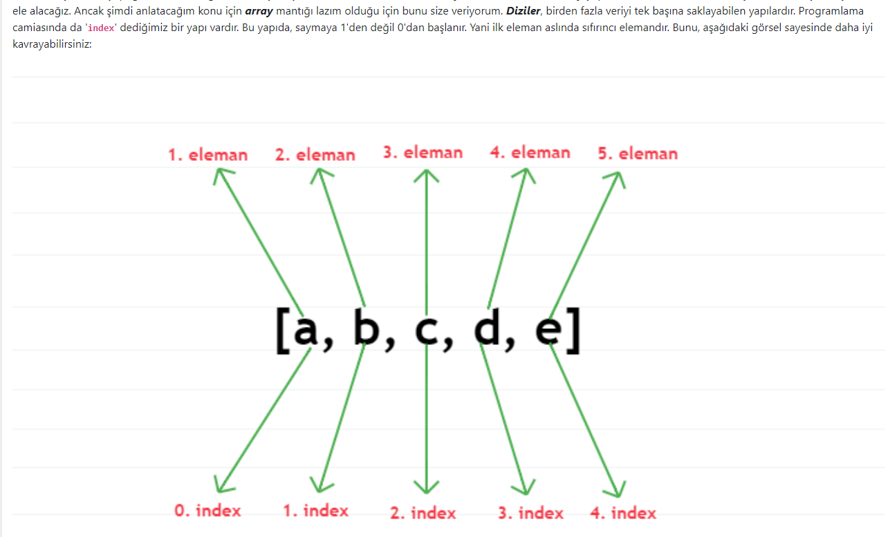 Daha önce, 'Kullanıcıdan Girdi Almak' isimli blogda Array konusuna değinmiş ve orada bu yapıların temel mantığını konuşmuştuk. Bu bloga, o blogdan hatırlatıcılar ile başlayacağız.