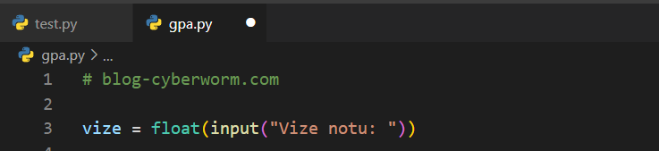 Şimdi, sırasıyla gideceğiz. İlk önce kullanıcıdan vize notunu almamız lazım. Bunun için input() fonksiyonunu kullanacağım.