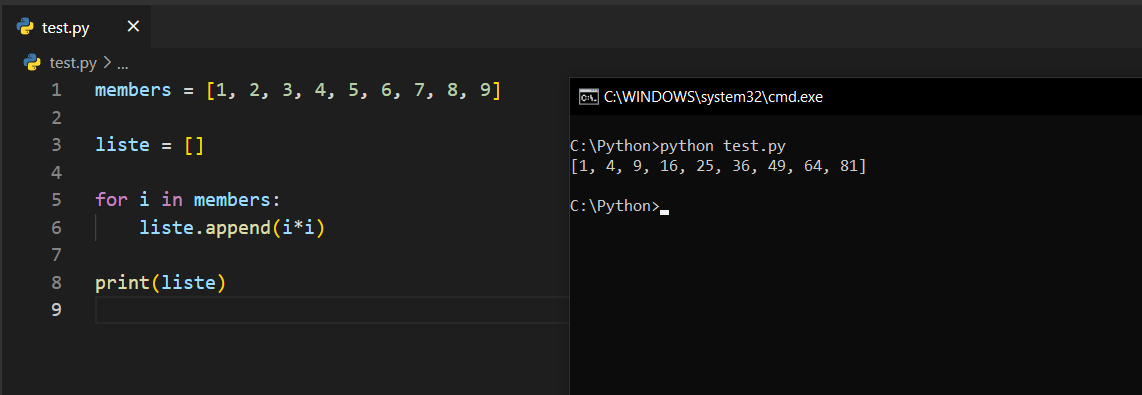 Şimdi, işleri biraz daha karıştıralım. Yine bir liste içerisindeki değerleri kendileriyle çarparak bunları yeni bir listeye koyalım ama bunu eski stil ile yapalım.