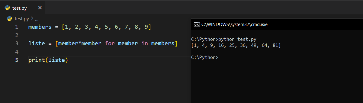 Gördüğünüz üzere gayet başarılı. Ancak List Comprehension sayesinde bunu tek bir satıra indirebiliriz.