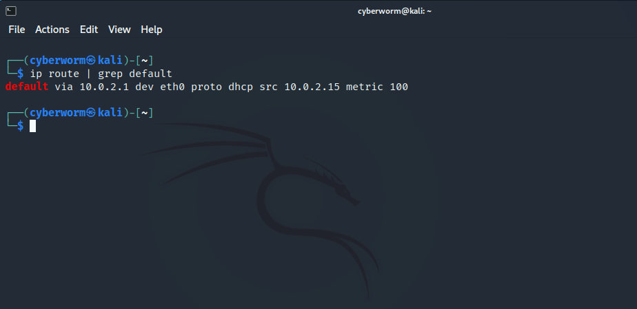 Bunun için terminal (cmd - Komut İstemi) açmanız gerekir. Daha sonra oraya 'ip route | grep default