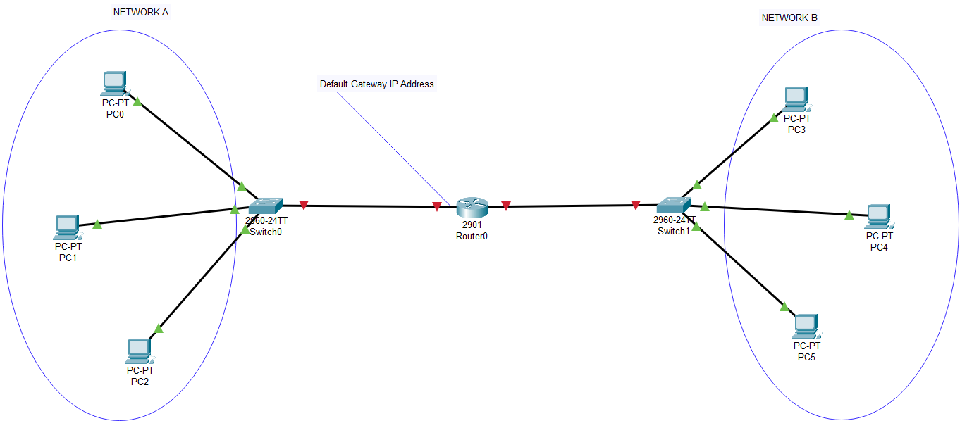 Yukarıdaki örneği inceleyelim. Network A'da bulunan bir bilgisayarın Network B'deki bir bilgisayara veri göndereceğini düşünelim. Bu durumda Network'e ait Switch'e bu veri gelir. Daha sonra Switch, eğer verinin gideceği yer aynı ağda ise bunu direkt olarak verir. Fakat aynı ağda değilse bunu direkt olarak Default Gateway'e yollar.