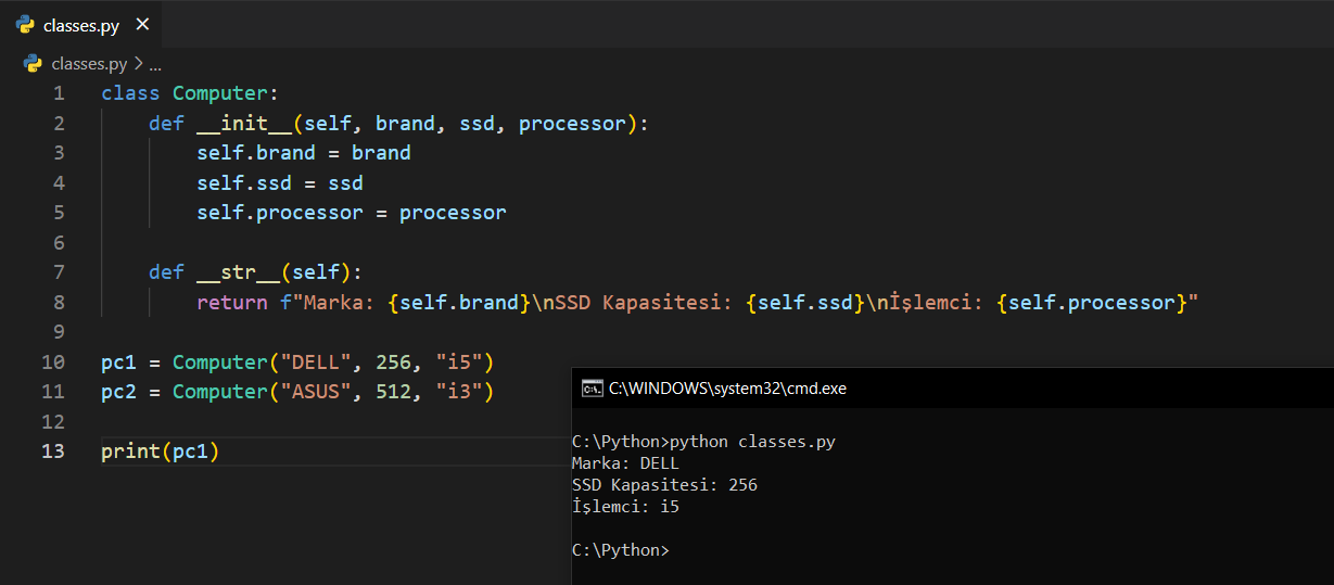 __str__(self): string veri tipi ile ilgilidir; string ile alakalı işlemleri baz alır. Detaylar için 'OOP | Bölüm 5' isimli blogu okuyabilirsiniz.