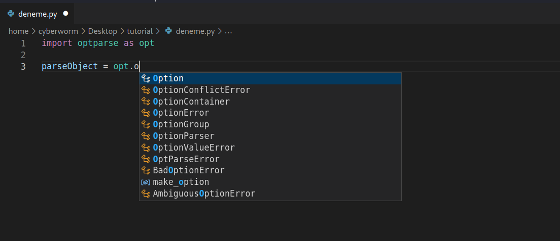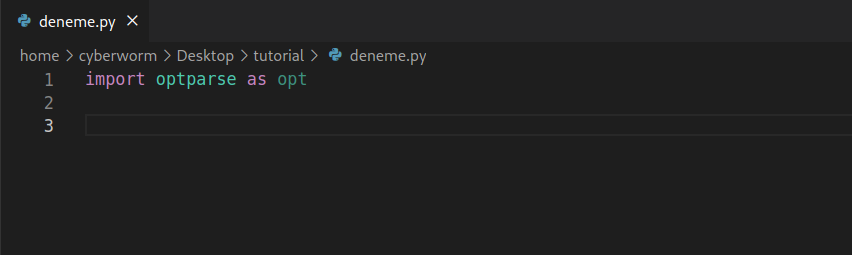 Bu blogu Linux üzerinden götüreceğim. Başlamadan önce yine import optparse as opt olarak tanımlıyorum.