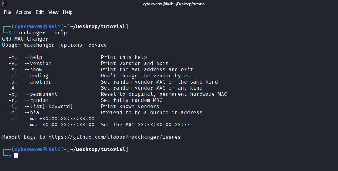 Gördüğünüz gibi önceden yazılmış araçların parametreleri genelde hem tek haneli hem de birkaç haneli oluyor. Mesela -h ile --help aynı işi yapacaktır; -m ile --mac aynı şeyi yapacaktır. Biz de bundan yapabiliriz.