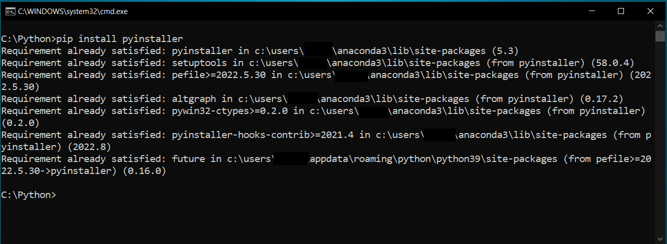 Bunun için pyinstaller isimli bir modül kullanacağız. Eğer bu modülü daha önce kullanmadıysanız bunu, pip install pyinstaller komutunu vererek indirebilirsiniz: