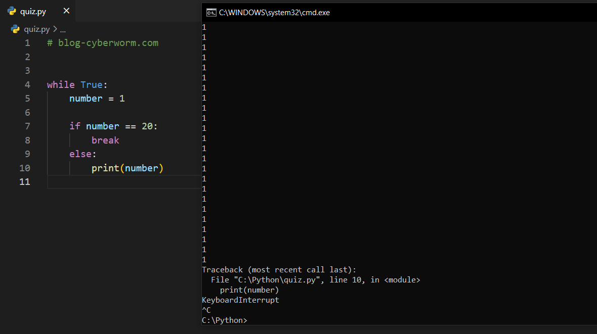 A) CTRL + C kombinasyonuyla kodu sonlandırabilir.