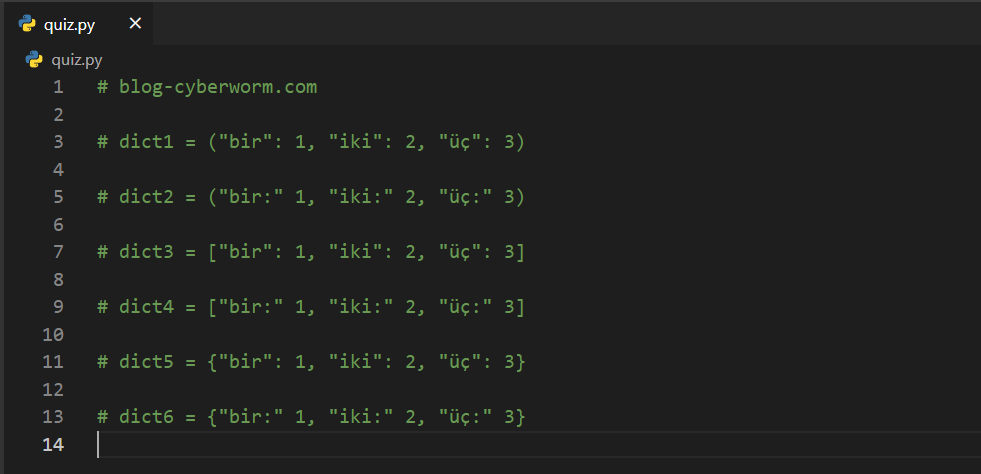 15. Bir sözlük (dict), bir adet key ve bir adet value değerinden oluşur.