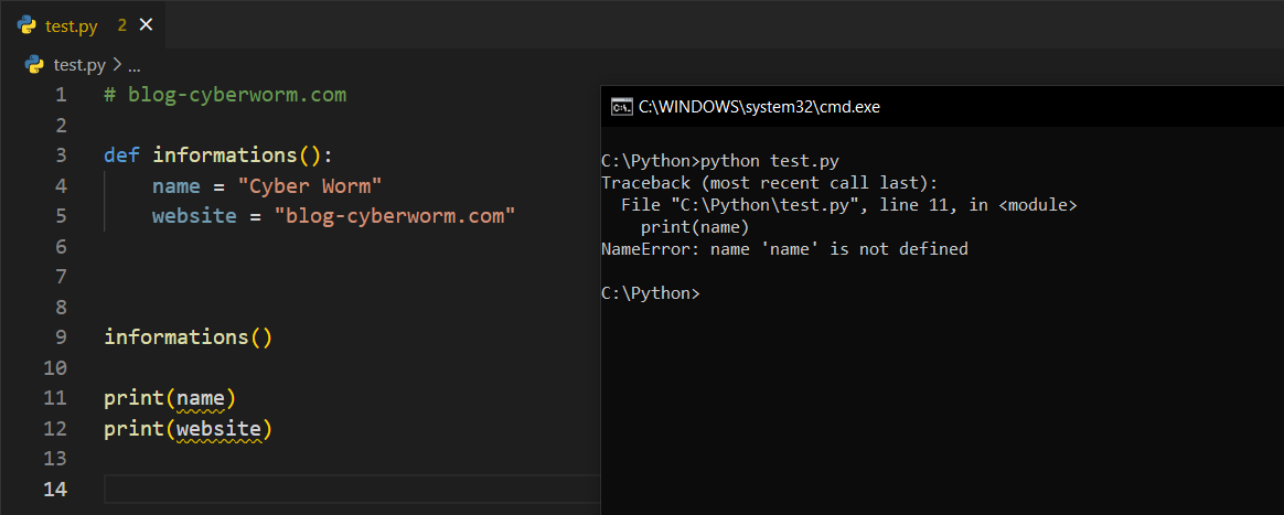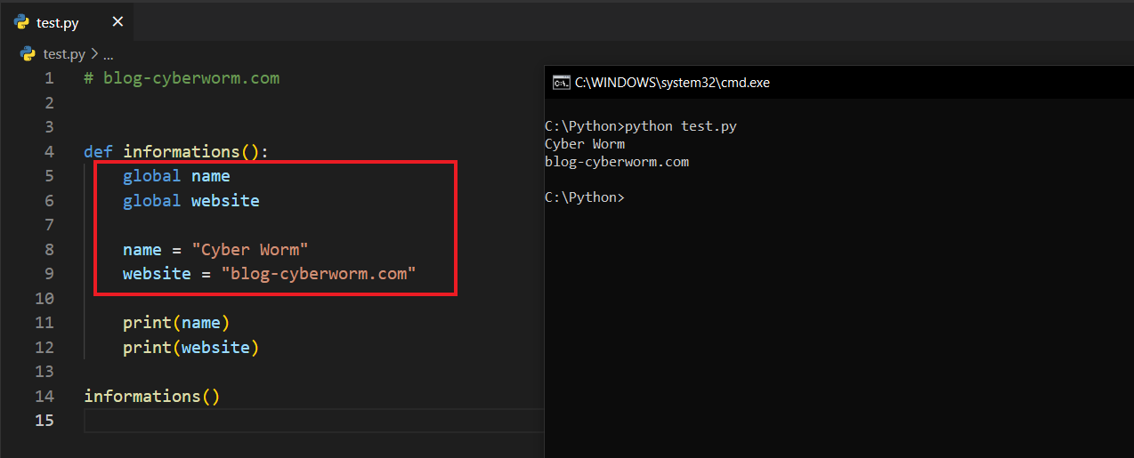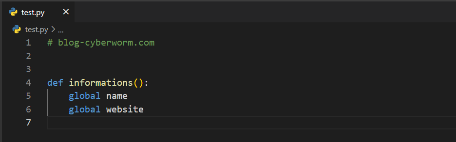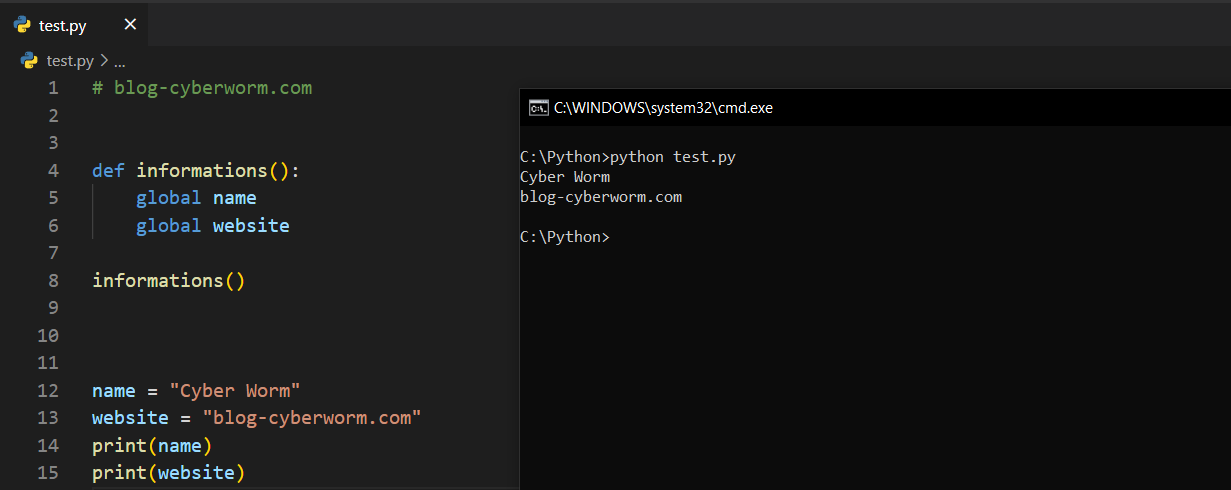 global name derken siz, değişkenin yalnızca ismini global olarak atıyorsunuz. Bu noktada bunun tam tanımını başka bir satırda veya başka bir yerde yapmanız gerekir. Yani global name dedikten sonra ayrı bir şekilde name = "Cyber Worm" demeniz gerekir.