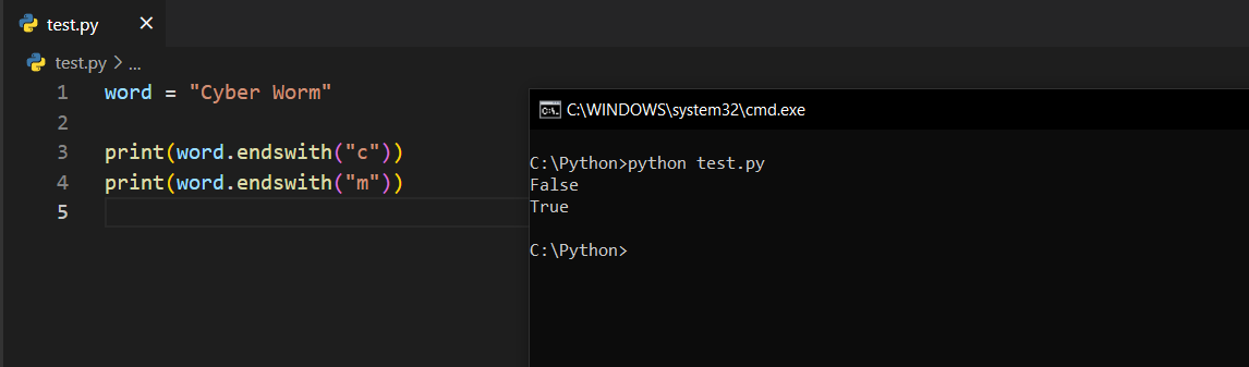 endswith()Bu fonksiyon ise bir öncekinin tam tersidir. En sondaki harfe ya da kalıba bakacaktır.