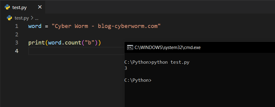 count()Bu fonksiyon, verdiğiniz argümanın string ifade içerisinde kaç defa geçtiğini gösterecektir.