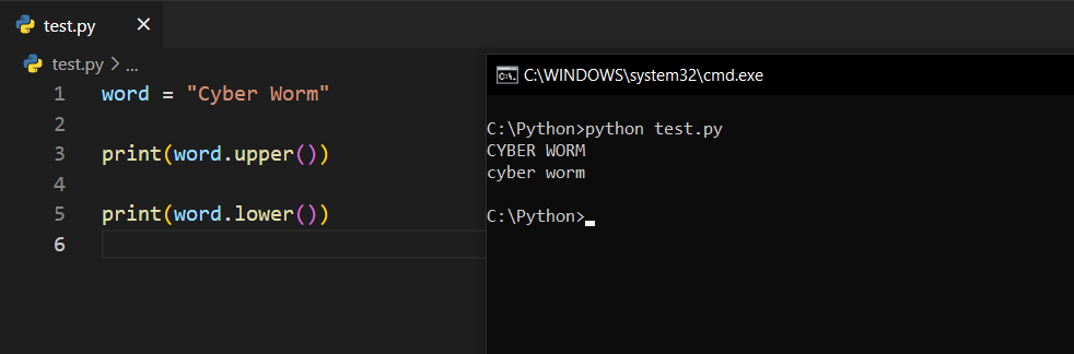 upper() - lower()upper() fonksiyonu, karakter gözetmeksizin bütün karakterin büyük harf ile yazılmasını sağlarken lower() fonksiyonu bunların küçük harflerle yazılmasını sağlar. Bakalım.