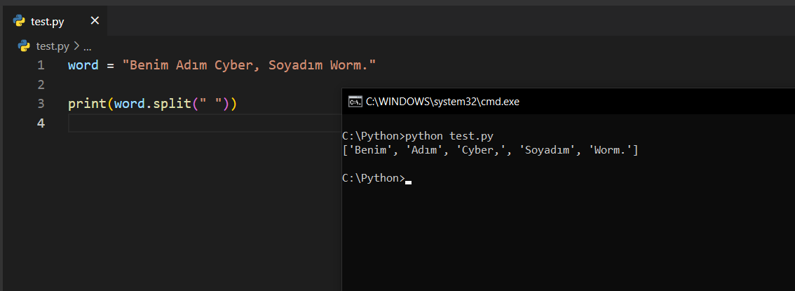 split()Bu fonksiyon, bir string yapısını bölerek her parçayı bir liste elemanı olarak tutar.