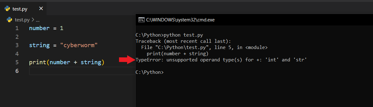 Normal şartlarda int bir değer ile string bir değeri toplayamıyoruz. Bunu daha önceki bloglardan biliyorsunuz. Bunun olması dahilinde çıkacak olan hata aşağıdaki gibidir.