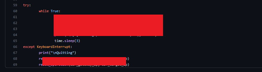 Aşağıdaki kodda bir sürü şey yapmış, KeyboardInterrupt hatasını yakalamışım.