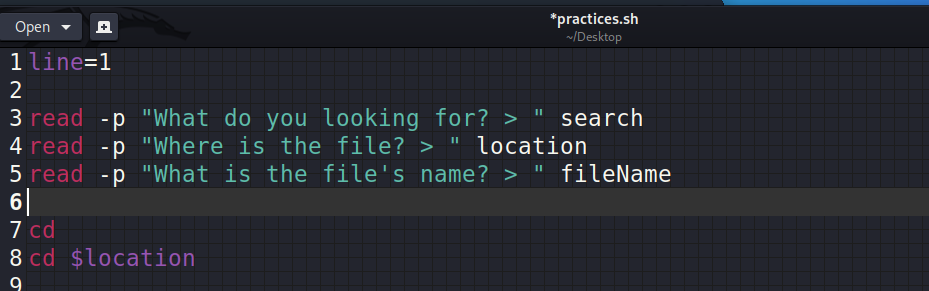 İlk önce ne aradığını, sonra aradığı şeyin yerini (lokasyonunu) ve son olarak dosyanın ismini istedik. Daha sonra 'cd' diye bir komut verdik ve kullanıcı hangi lokasyonda olursa olsun ana klasöre insin istedik. Sonrasında gelen 'cd $location' komutu ile, kullanıcının girdiği lokasyona gidebiliyoruz. Eğer 'cd' demeseydik kullanıcı, çok ters bir lokasyonda olabilirdi ve bir türlü bahsettiğimiz o lokasyona gidemezdi. O yüzden öne ana klasöre indik.