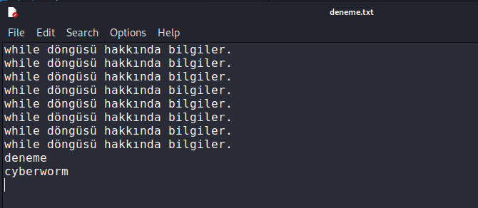 Evet, dosyanın içeriğini başarılı bir şekilde okuduk. Peki, bunu while ile yapalım.