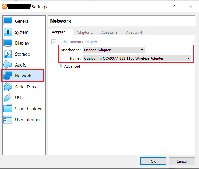 Daha sonra sol taraftaki seçenekler arasından 'Network' seçeneğini seçiyoruz. Burada daha önce, 'NAT Network' seçtiğimizi hatırlıyorsunuzdur. Şimdi, 'Bridge Adapter' seçeneğini seçmemiz ve aşağıdaki kısımda da cihazımızı seçmemiz gerekiyor.