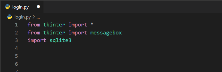 İhtiyacımız olan üç şey var. Bunlardan biri tkniter, diğeri sqlite3, bir diğeri ise tkinter içerisinde bulunan messagebox. Bunları import ediyorum: