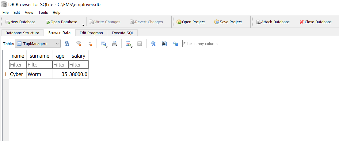 UPDATE TopManagers SET salary=40000.0 WHERE ROWID=1