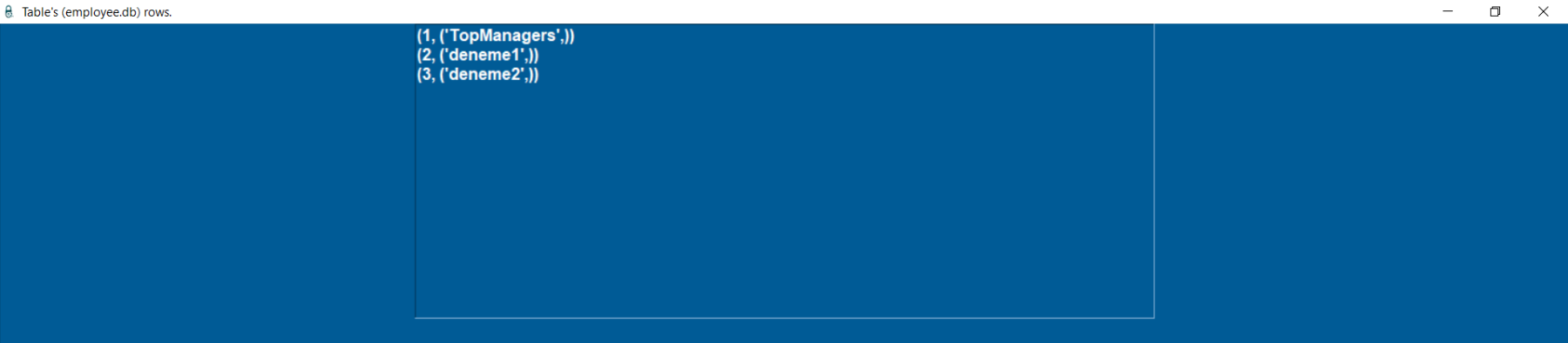 Bunu yaptığımızda artık varsayılan veri tabanı employee.db olacaktır. Programı çalıştırıp görelim: